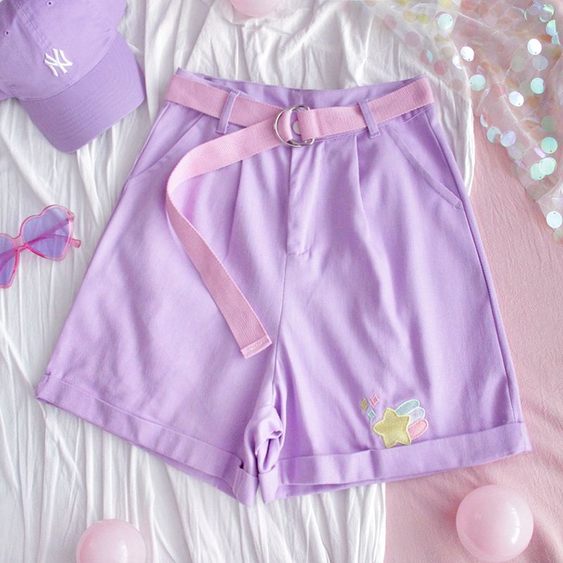 Women Kawaii Wide Leg Shorts Teen Girls Harajuku Cartoon Denim Shorts Women High Waist Cute Casual Belt Purple Jeans Short Femme From Sikaku 40 32 Dhgate Com